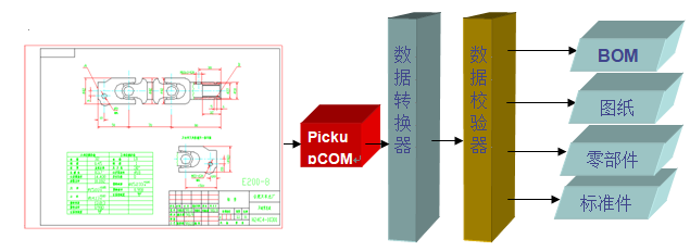 ? ? ? 原AutoCAD圖紙的歸檔和數(shù)據(jù)提取是一直困擾企業(yè)信息化實(shí)施過程中的一個(gè)問題。”共好”在這方面有非常好的表現(xiàn),我們提供了一個(gè)獨(dú)立于AutoCAD和PLM系統(tǒng)的PickUpCom組件,通過PLM調(diào)用該組件自動提取AutoCAD圖紙中的歸檔信息(如圖號、名稱等)及產(chǎn)品結(jié)構(gòu)數(shù)據(jù)(裝配圖的明細(xì)表信息)。