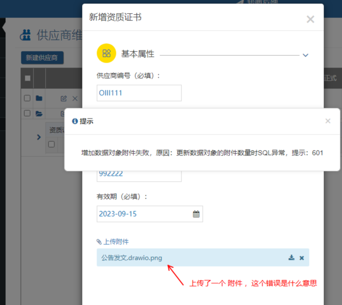 文件上傳:更新數據對象的附件數量時SQL異常,提示:601 2023/09/06 分類:產品中心 問題中心 746 問題描述:(20230906 發現) 若OIDateWebs 升級到 20230614 之后版本 ,而mobox數據對象是之前創建的,并且帶附件。存在OIDateWebs 升級后造成附件上傳異常問題 解決方法: 步驟1)下載OIDataWebS_R_20230905.zip 步驟2)更新OIDataWebS服務 步驟3)將數據對象里面的附件選擇先去掉 ,之后 ,重新添加附件選項 確定后,重新進入 ,將 附件 選項 重新 打上 標簽:問題 上一篇: 低代碼腳本開發-人員選擇 下一篇: 數據庫還原成功后(狀態為:關閉,正常),服務無法鏈接