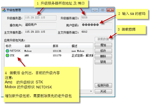 AM及Mobox客戶端可以實現(xiàn)在線自動升級。過程是,現(xiàn)在服務(wù)器端部署最新的升級包,AM或Mobox客戶端登錄的時候,能識別服務(wù)端已經(jīng)有新的版本,進(jìn)而提醒客戶端進(jìn)行升級。以下是服務(wù)端配置最新升級包的方法