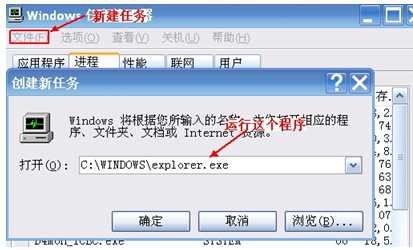 2、通過windows 任務(wù)管理器將 explorer.exe 重新啟動起來