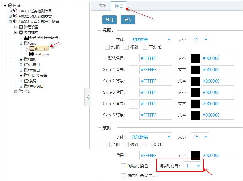 Mobox 3000功能點表格直接編輯的實現 2024/04/27 分類:產品中心 產品手冊 實施方案 670 3000 功能,可以點擊某一條記錄后,對這條記錄進行修改。但有的時候用戶這個數據是一個大表,希望能在全屏的模式下進行表格編輯,這樣會比較快 為此,系統可以實現表格直接輸入的功能。 實現方式如下 1)3000 功能點,綁定某數據類的grid 2)這個grid樣式中,需要定義,那些字段可以編輯 3)增加頁面按鈕,功能綁定 GridEdit 4)在輸入環節,點擊 頁面按鈕(輸入)就能進行表格直接輸入 5)格子編輯時的高度,可以在樣式里面定義 標簽:手冊 上一篇: Mobox 3000功能點頁面按鈕隱藏的lua實現方法 下一篇: 怎樣將ASP.NET Core Web API 部署到IIS